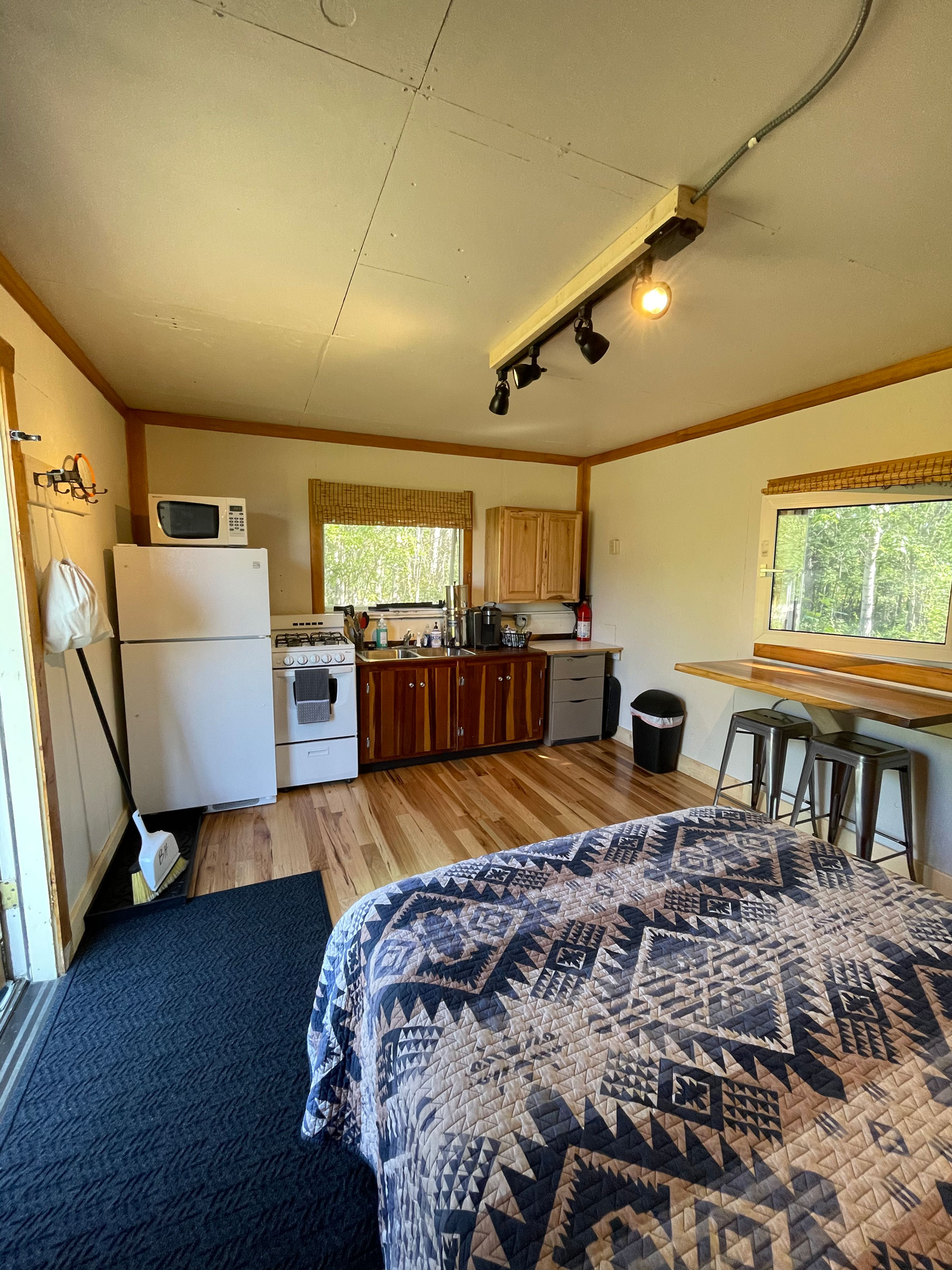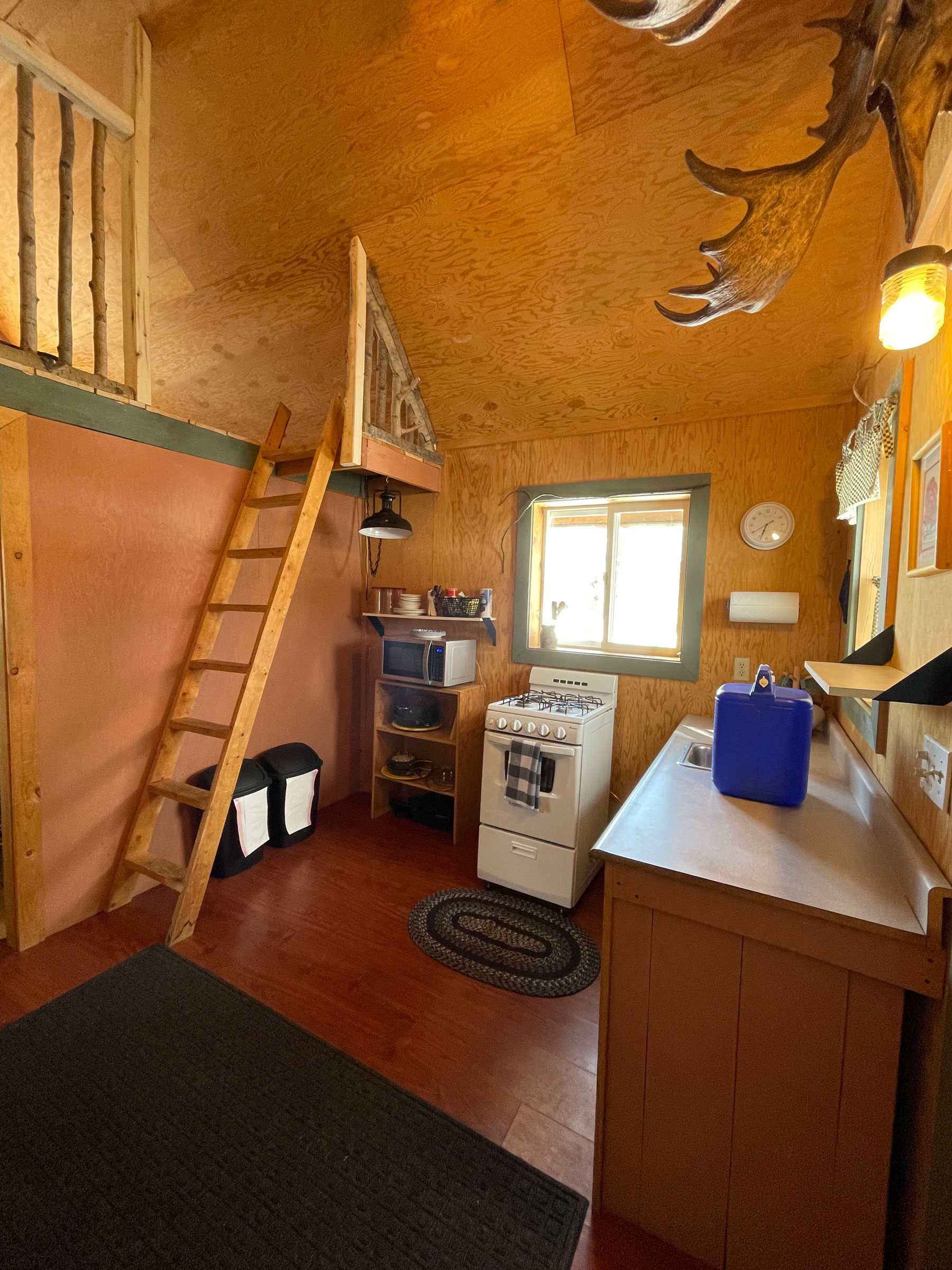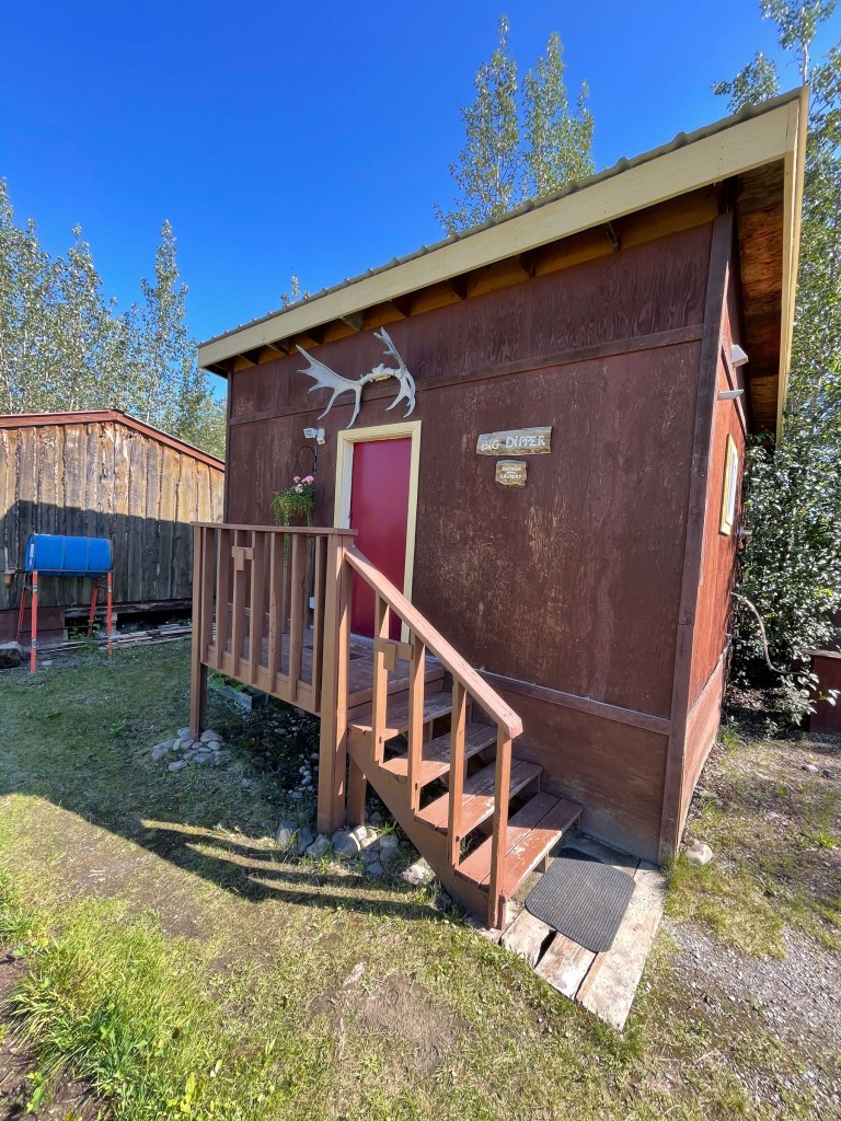 It is runway adjacent and easily within walking distance of everything. The cozy cabins provide functional comfort with a separate shower and bath house and an all Alaskan outhouse!